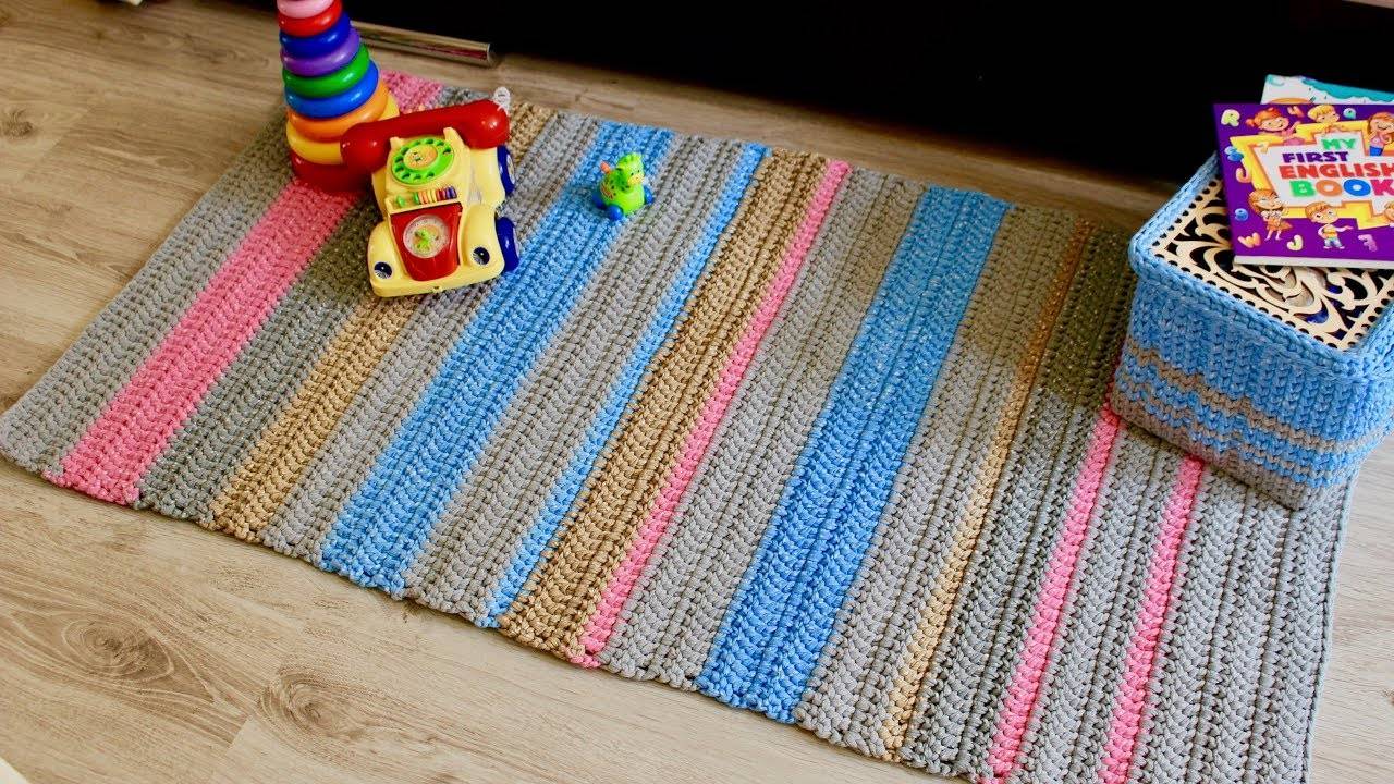 Такой вид замечательно будет смотреться под туалетным столиком, прикроватной тумбой либо на полу около двери. Если использовать крупную вязку, внешний вид станет излучать тепло. Сделать такой совсем не сложно: