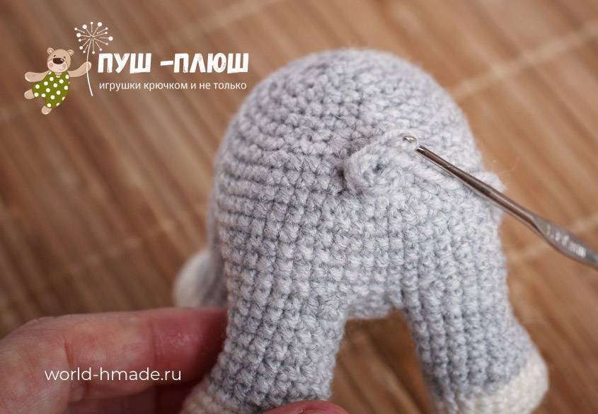Пришить ушки на расстоянии 12 сбн друг от друга.