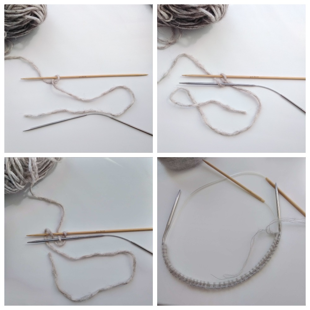 Мне понадобятся 2 пары спиц одного размера: рабочие могут быть прямыми или круговыми, дополнительные должны быть круговыми.