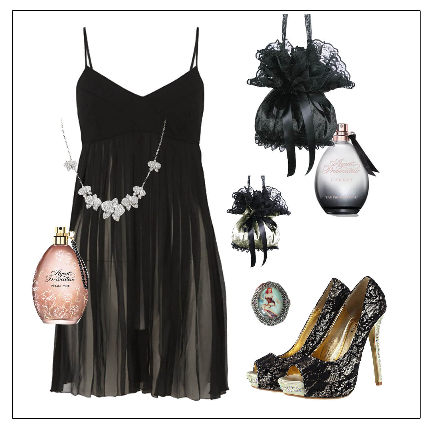 С черным платьем принято носить туфли или босоножки на высоких каблуках или шпильках либо туфли «лодочки». Сумочка должна быть маленькой и изящной. Клатч должен подходить по цвету к туфлям.