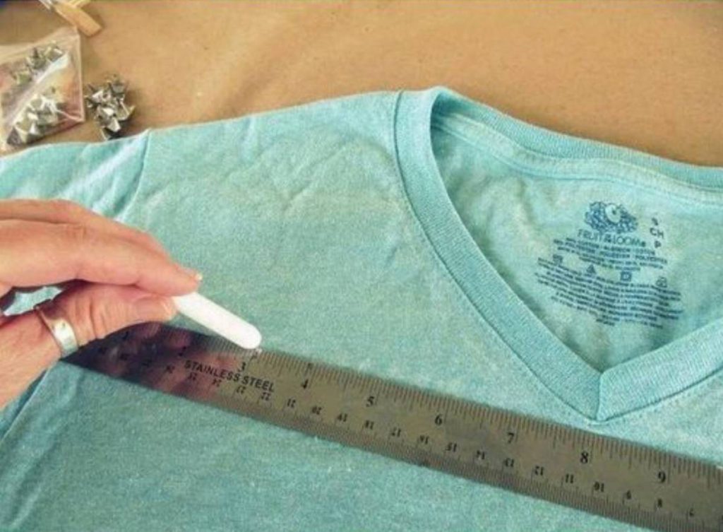 Если футболка растянулась в длину, здесь нет ничего сложного. Возьмите другую похожую вещи и измеряйте длину от подмышек к самому низу.