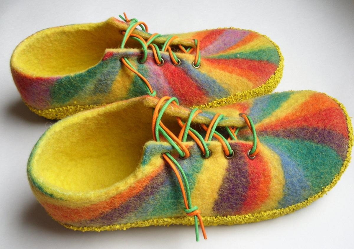 Чтобы валяные тапочки из шерсти выглядели стильно, их можно оснастить шнурками