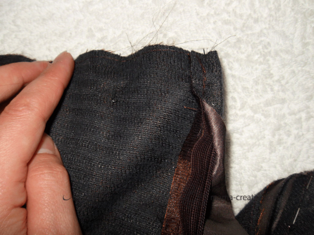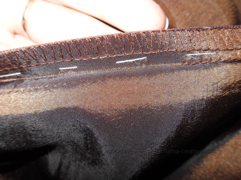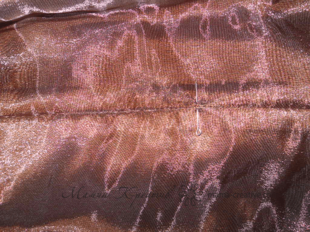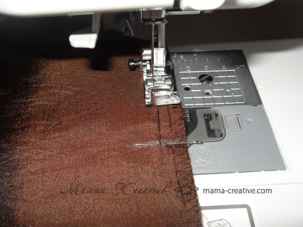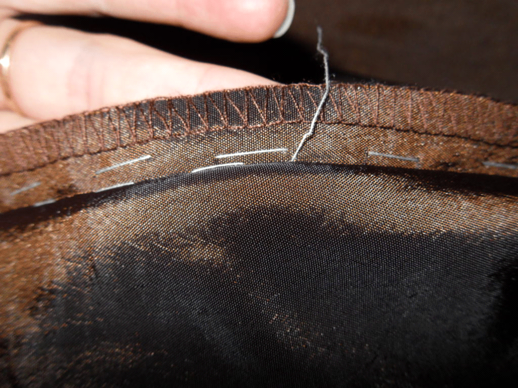 12. Шов выметываем, формируя небольшой кантик из основного платья на лице подклада.