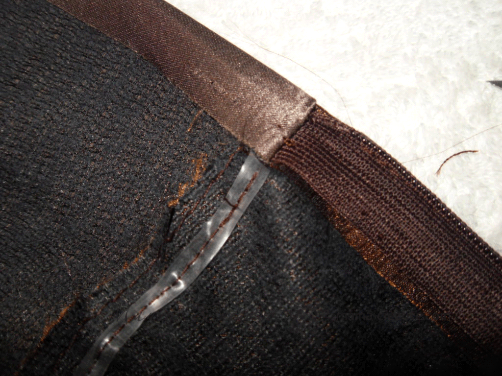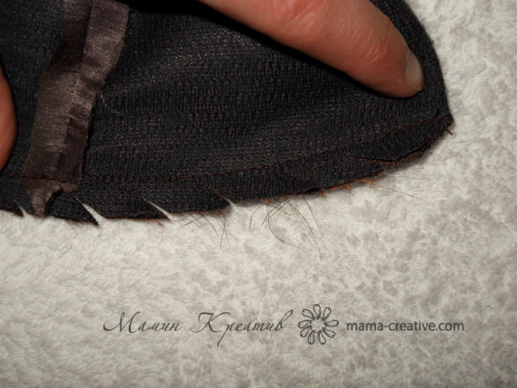 С изнаночной стороны (примерно на 1 см вниз от замка) делается закрепляющий шов. После чего задний шов сшивается до самого конца, но очень аккуратно.