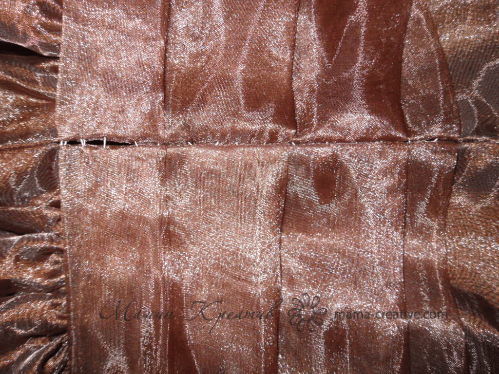 булавками и проложите прямую строчку вдоль основания, фиксируя тем самым дно и углы.