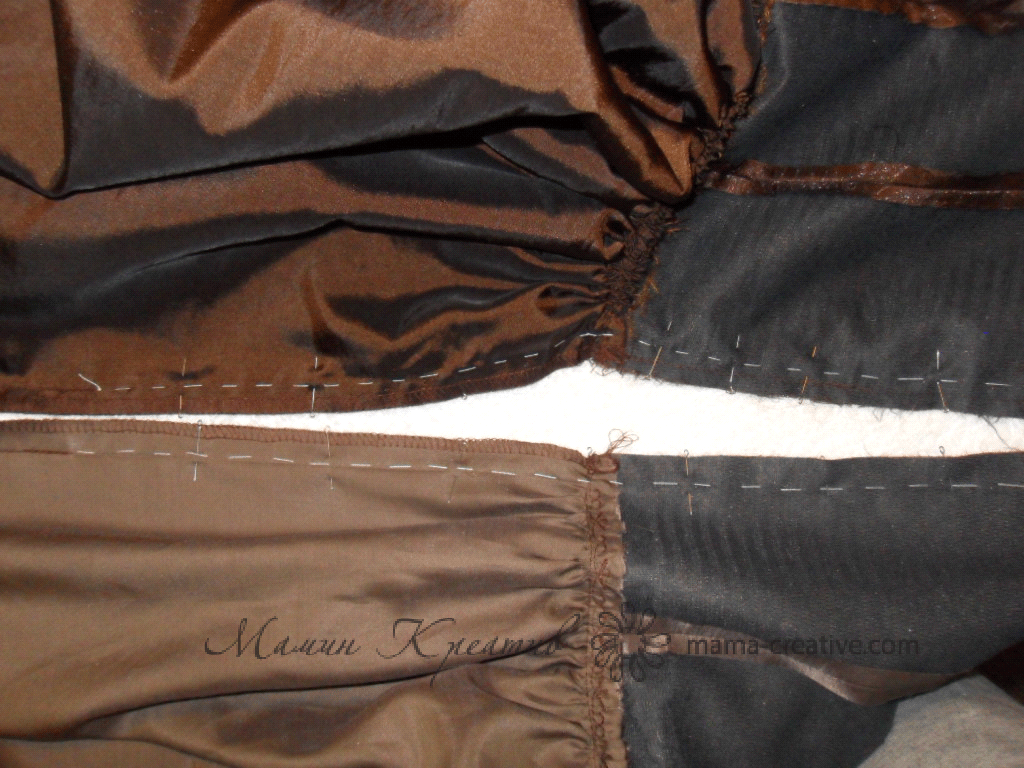 3. Далее от поставленной метки – и на основном платье, и на подкладе, не застроченные
