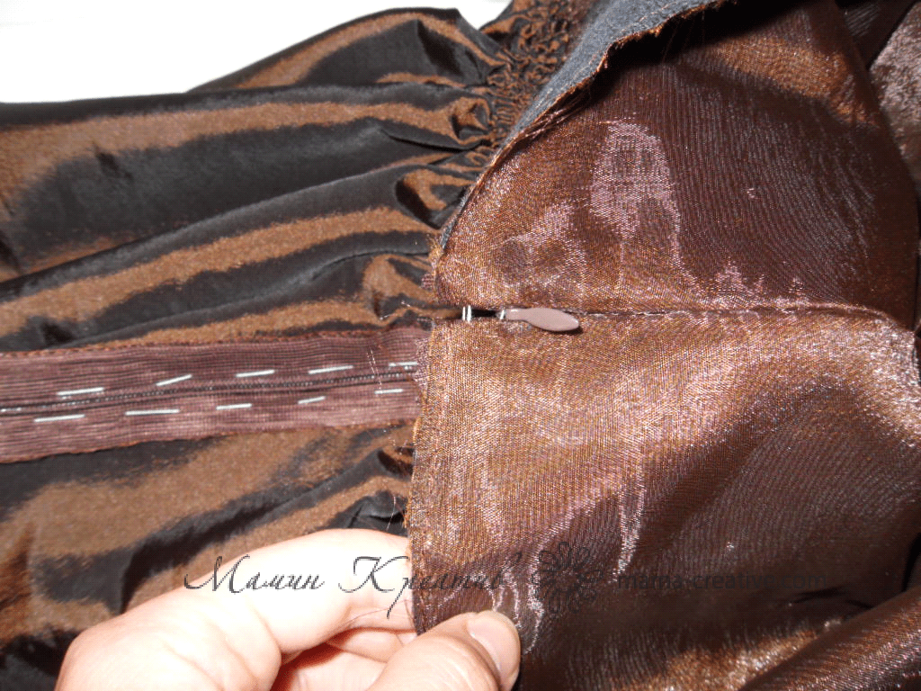Важно аккуратно вшить замок в платье сбоку или сзади, чтобы он выполнял положенную функцию, при этом не приводил изделие к деформации