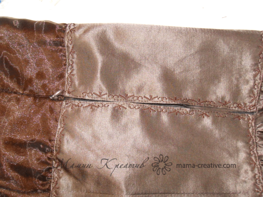 Та же операция проделывается и с другой стороны. А если ткань скользящая, то замок прошивается сверху.