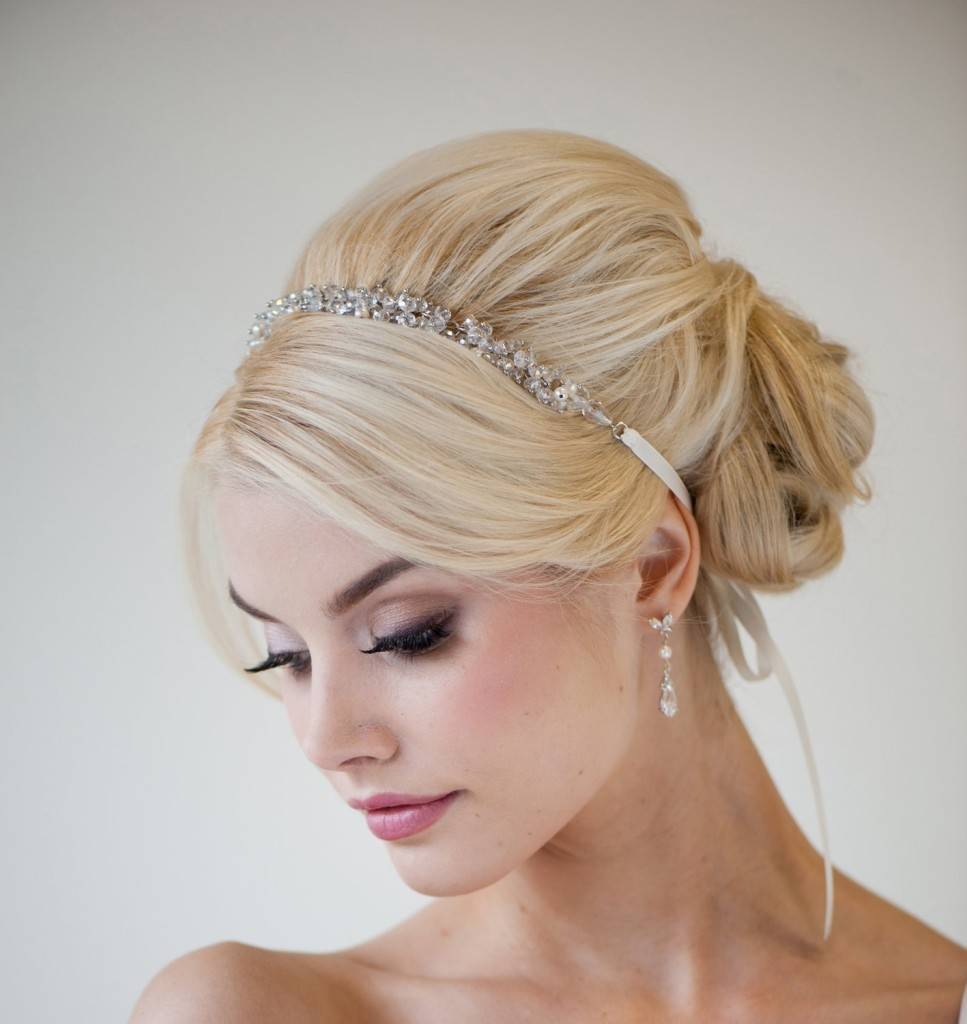 - Ободки и диадемы. Эти украшения можно использовать как с фатой, так и без нее. Украшенные сверкающими камнями диадемы позволят дамам почувствовать себя настоящей принцессой. Ободки более просты, но не менее изысканны. Они больше подходят для платьев в греческом стиле или в стиле винтаж.