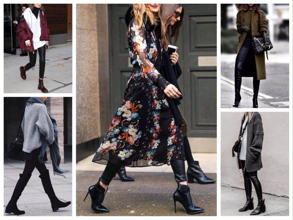 Обувь подбирайте в зависимости от наряда: с изящными полусапожками на шпильках получится женственный наряд, а грубые ботинки с заклепками помогут создать рокерский образ.