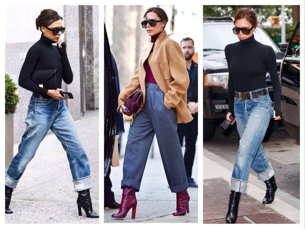 Широкие джинсы дополни свободным свитером с мужского плеча, разбавить образ элегантной сумочкой и утонченной обувью;