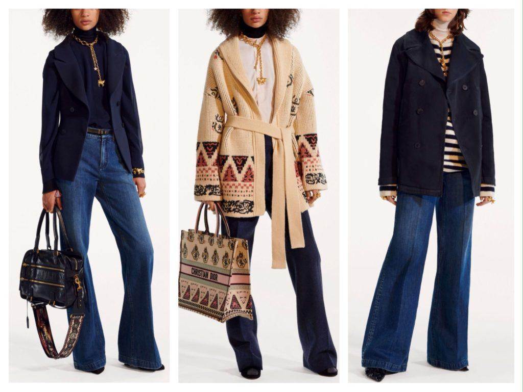 Джинсы-клеш обыгрывай плащом, ботинками на платформе и беретом. Есть вариант спортивного образа с кроссовками, утепленной кепкой, курткой и сумкой спортивного типа.