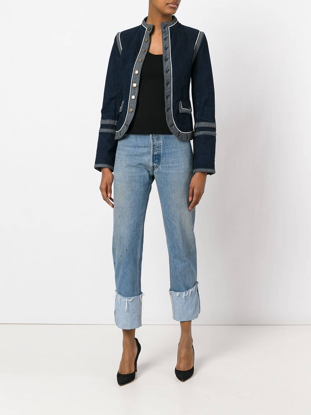 Чтобы создать из этих двух деталей модный образ, сочетайте их с парой коричневых ботинок и джемпером с круглым вырезом — так можно отправиться в бар посреди недели. А для более модных мероприятий выбирайте джемпер-водолазку и кожаные броги. Если вы носите Селвидж деним (а вы должны выбирать именного его!), не забудьте подвернуть джинсы пару раз, чтобы продемонстрировать настоящую кромку Селвидж.
