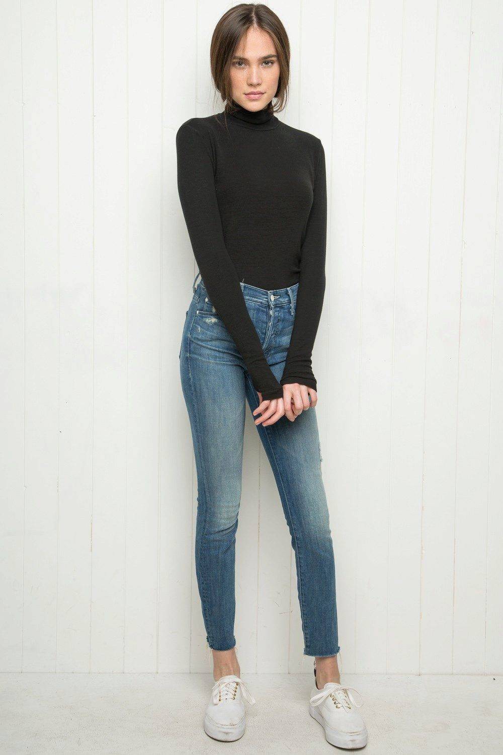 В первом случае, черная водолазка может достигать середины бедра. Такую модель можно смело надевать с плотными легинсами или узкими брюками. Чтобы длинную водолазку было носить комфортно, в боковых швах могут быть сделаны разрезы.