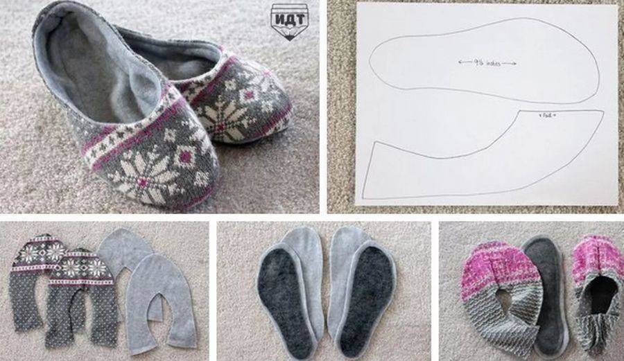КЛАСС! Тапочки из старого свитера: 19 разных выкроек и фото