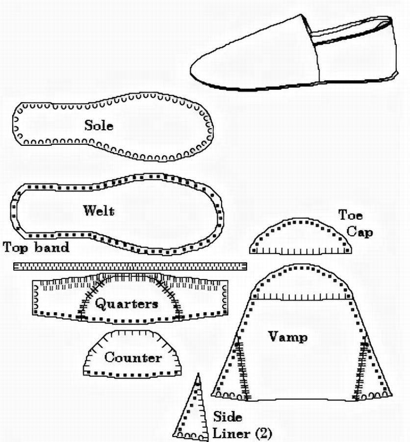- соедините связанную стельку с подошвой, закрепляя нить за подготовленные ранее стежки.