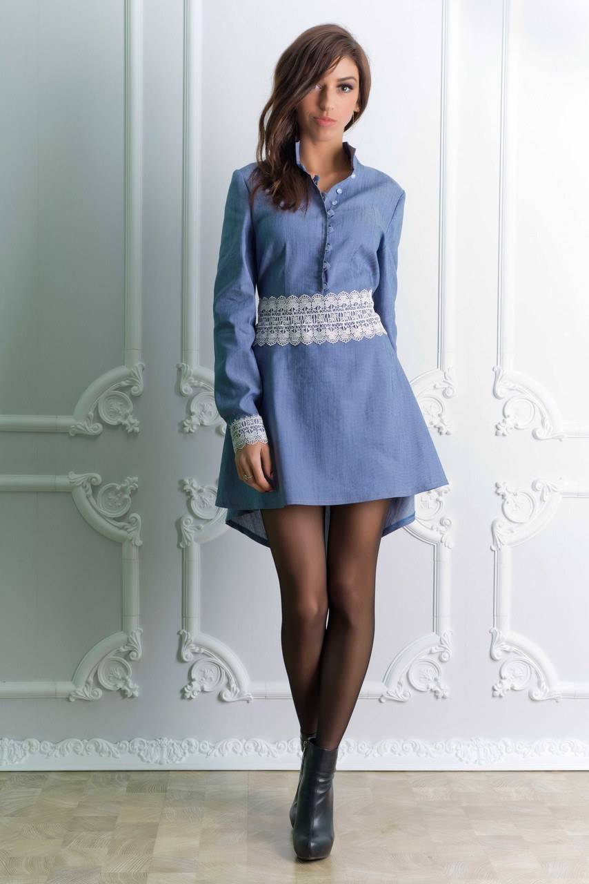 Современные модельеры предлагают следующие фасоны джинсовых платьев-рубашек: