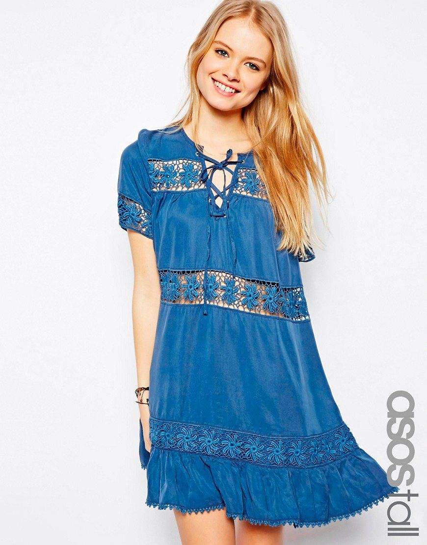 Платья из джинсовой ткани с белым кружевом подойдут романтичным особам. Они выглядят утонченно и подходят даже для свидания. Ведь в такой одежде любая девушка будет выглядеть нарядно и женственно. Самыми идеальными моделями считаются платья с расклешенной юбкой, в которых декольте украшено нежным кружевом. К таким моделям подходит обувь на высокой танкетке, которая сможет подчеркнуть длинные и стройные ноги своей обладательницы.