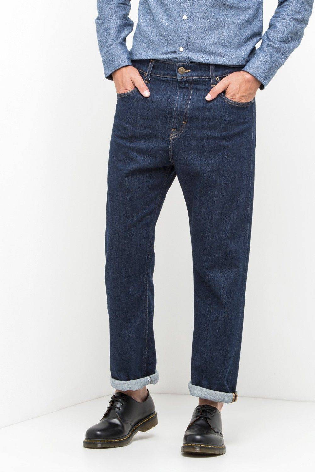 Это мужские джинсы стиля casual, обладающие высокой посадкой. Их пояс доходит до уровня пупка. Завышенная линия талии подходит далеко не всем. Фасон идеален для высоких мужчин худощавого телосложения. Конкретных рекомендаций по выбору верха нет. Можно надевать поло, футболку, водолазку. Джинсы high rise сочетаются с рубашками при условии, что она носится навыпуск.