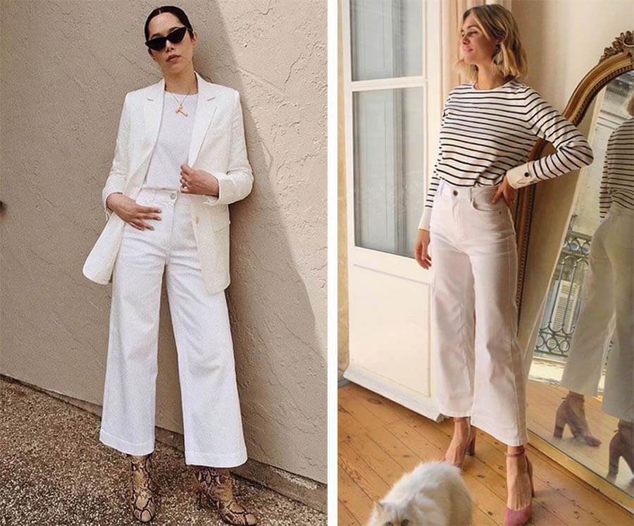 С белым верхом хорошо сочетаются джинсы любых фасонов: скинни, слоучи, бойфренды с завышенной талией.