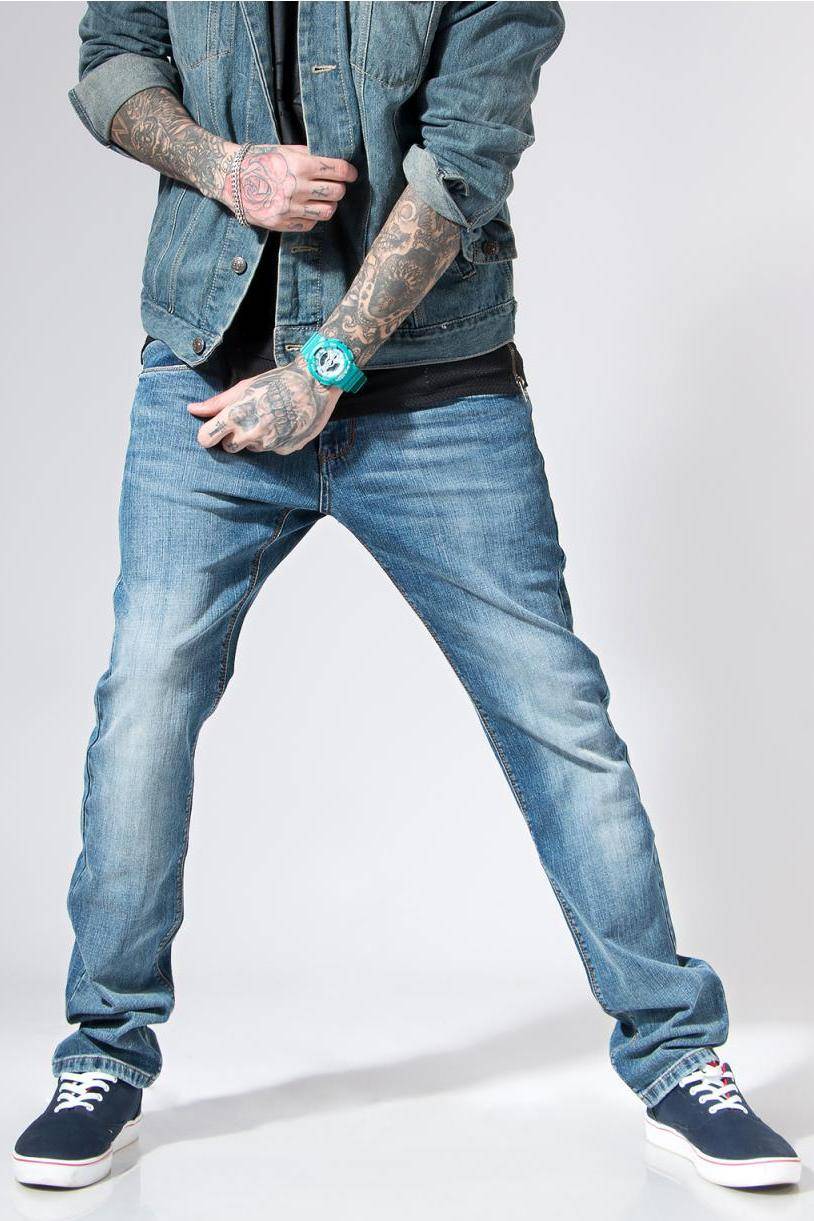 Мужская мода также очень демократична, допускает смешение стилей и яркие акценты. Дизайнеры используют необычную цветовую гамму и элементы нарочитой небрежности в виде распущенных ниток на карманах и низках брюк, прорех и потертостей. По-прежнему актуальны джинсы мужские узкого кроя с подвернутым низом.