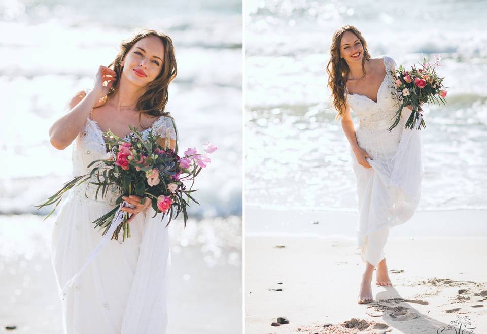 Цветовые сочетания ничем не ограничены. Естественно, что для свадебной церемонии выбираются белоснежные платья, так же популярен цвет шампань, айвори, беж, фарфор.