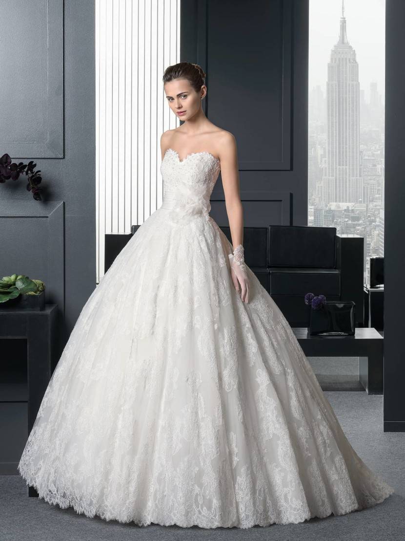 Бальные свадебные платья будут идеальными для девушек высокого и среднего роста. Пышность юбки здесь достигается с помощью кринолина и подъюбника с большим количеством колец (5 — 7). Корсет отрезан от низа, он не должен иметь объёмных деталей. Юбка может быть украшена воланами, складками, рюшами и т.д.