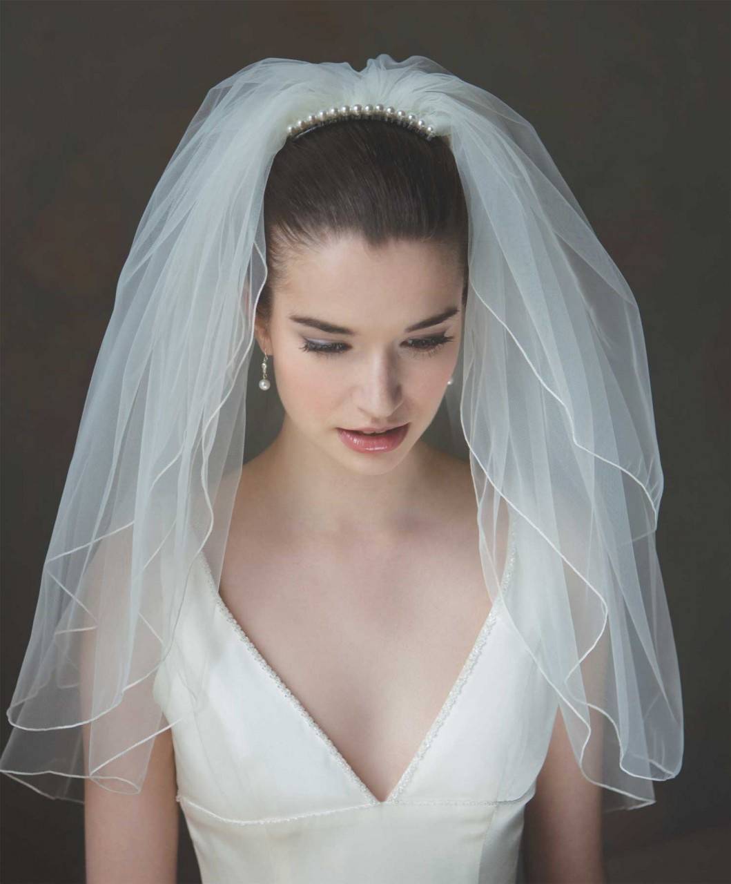 Жесткая фатиновая фата делает вид более торжественным, зато более мягкий фатин подходит для двухслойной фаты, скрывающей лицо.