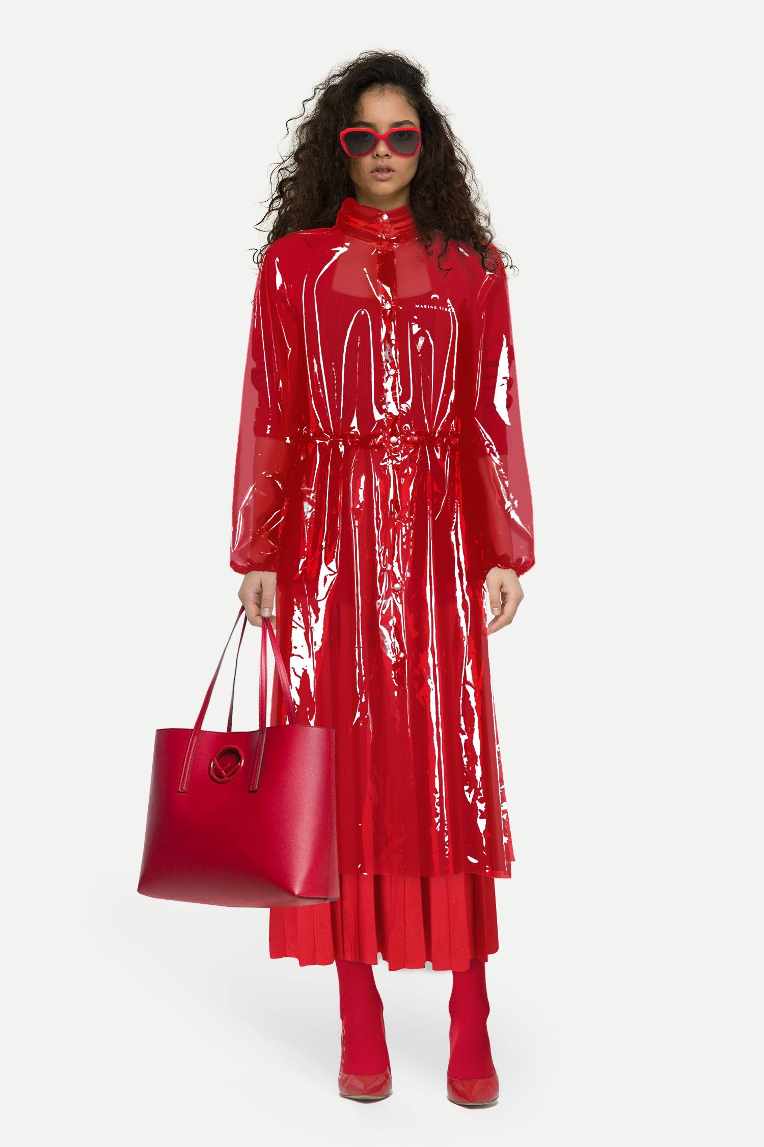 Однако есть один аксессуар, который прекрасно дополнит плащ-дождевик — это яркая сумка с 3D-эффектом. Если подобрать ее в тон плащу, получится очень гармоничный и стильный лук.
