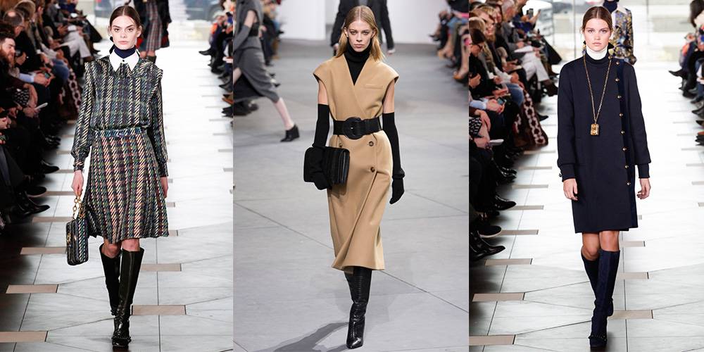 На подиумах часто появлялись тёплые водолазки, причём часто — как нижний слой под лёгкие платья в многослойных образах.