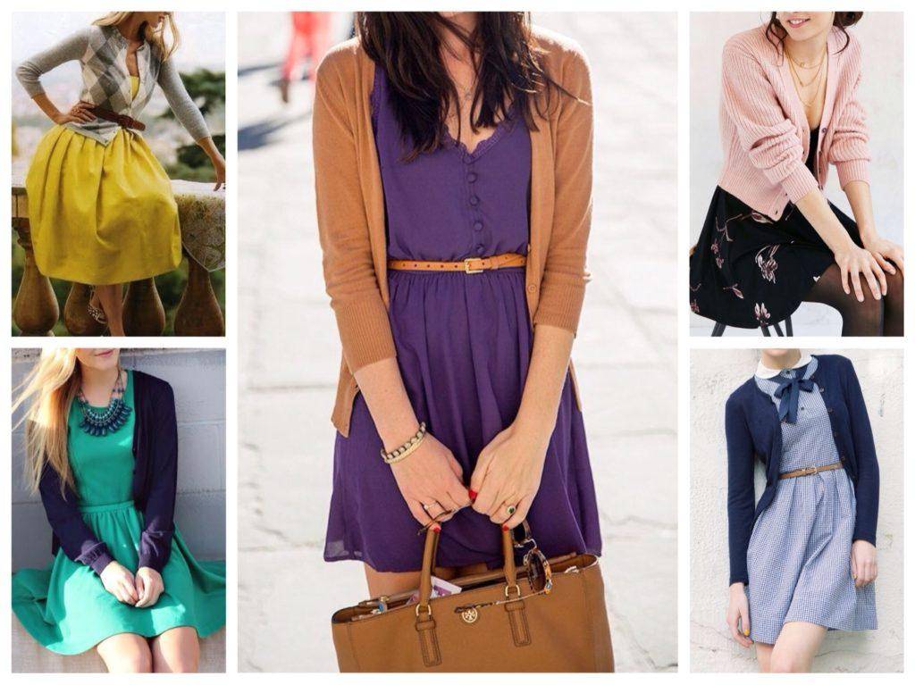 Важно! Комбинируя шерстяной кардиган с трикотажным платьем, позаботьтесь, чтобы они отличались друг от друга фактурой вязки. Даже брошенному вскользь взгляду должно быть понятно, где заканчивается одно и начинается другое.