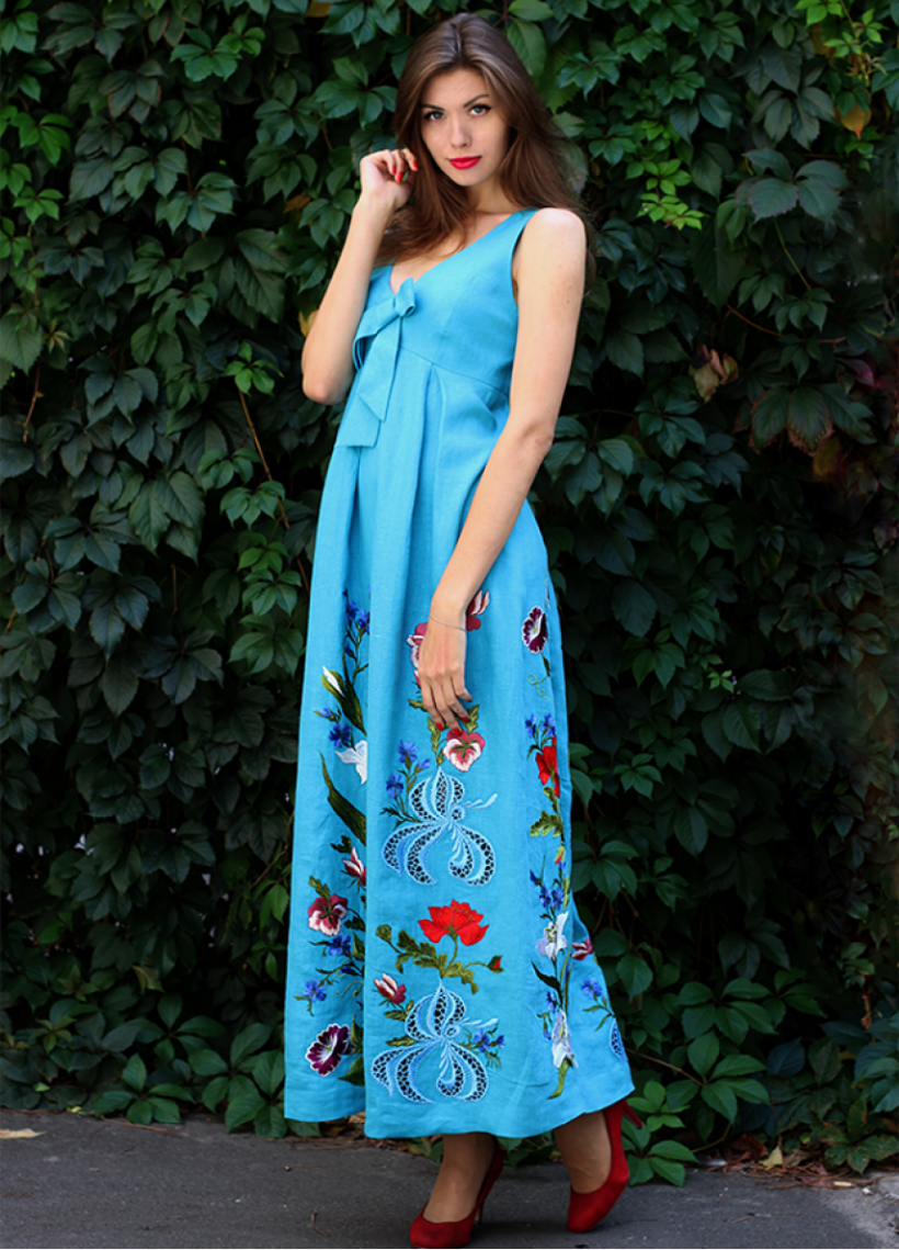 Аксессуары любого формата: от бус из ракушек до бриллиантов можно использовать в комплекте с синим сарафаном, все зависит от модели изделия и тона мероприятия.