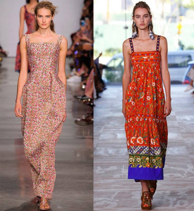 Сарафаны с крупными цветочными, растительными и животными принтами популярны уже не один сезон. Широк выбор расцветок в летних коллекциях, зачастую в них преобладают сочетания желтого, зеленого и красного цветов во всевозможных оттенках и сочетаниях. Сшитые из шелка, хлопка, льна, яркие сарафаны созданы для жаркого солнечного лета. Носить такие вещи необходимо с босоножками на плоской подошве, туфлями без каблука или биркенштоками.