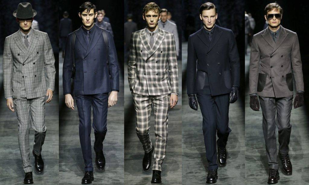 Лидерство двубортных вариантов в этом году с лёгкостью взяла на себя марка Brioni. Но дизайнер всегда остаётся дизайнером, поэтому не мог не внести собственные коррективы в традиционный двубортный пиджак