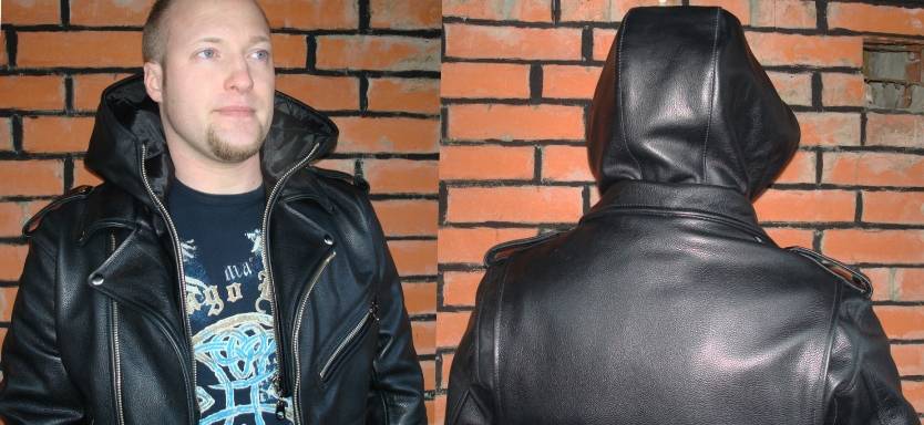 Изделия с капюшоном больше соответствуют спортивному стилю. Традиционно это укороченные куртки, в которых кожа соседствует с тканью, обычно трикотажем. Из трикотажа выполнены капюшон и манжеты. Такие модели подходят для межсезонья, но в холодное время года они не слишком согревают. Другое дело – зимние куртки с капюшоном. Это полностью кожаные изделия, в которых даже капюшон прошит утеплителем.