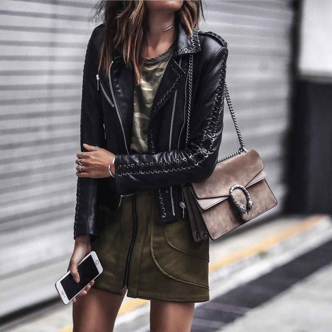 Кожаная куртка — один из базовых предметов гардероба современной модницы. Она может быть совершенно разного фасона или цвета, но тем не менее каждый вариант достойный внимания. Просмотрите идеи образов и обязательно попробуйте создать свой уникальный лук.