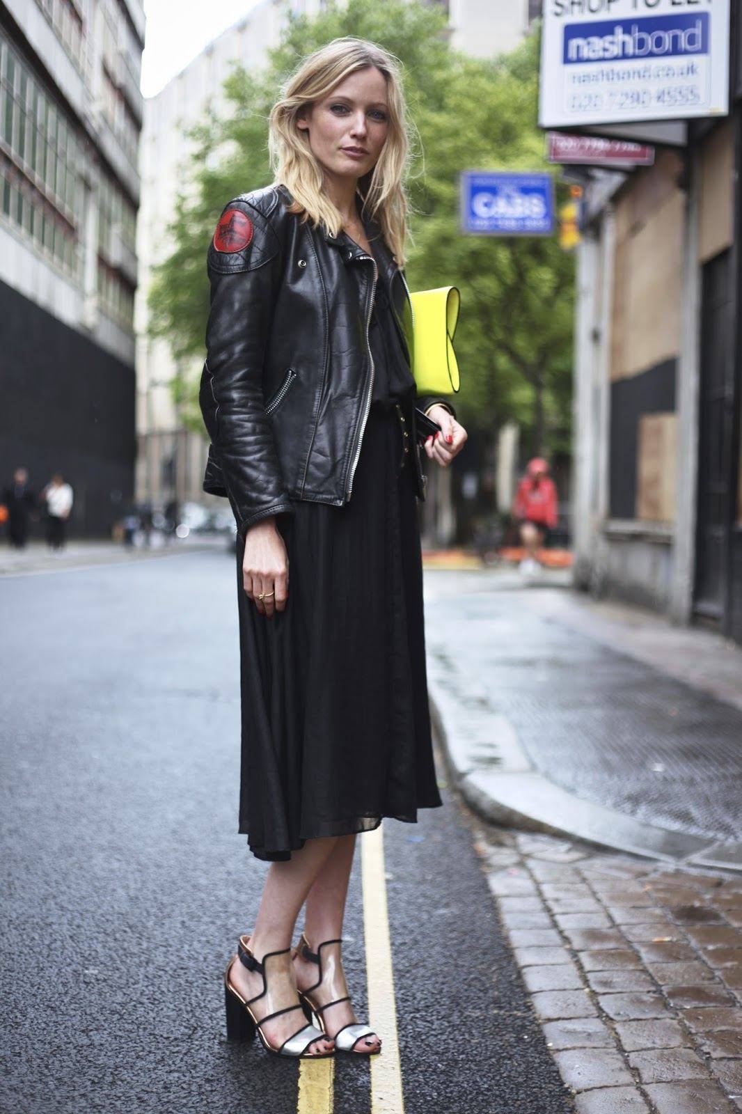 Особенно стильно смотрится образ на основе плиссированной юбки и кожаной куртки. Благодаря такому сочетанию он получается гармоничным. Поскольку присутствуют не только романтичные женственные элементы, но и более дерзкий акцент из кожи. Альтернативой может быть юбка на запах, солнце или в виде трапеции. Длина при этом не слишком принципиально, поэтому можно подобрать подходящий вариант исходя из особенностей фигуры.
