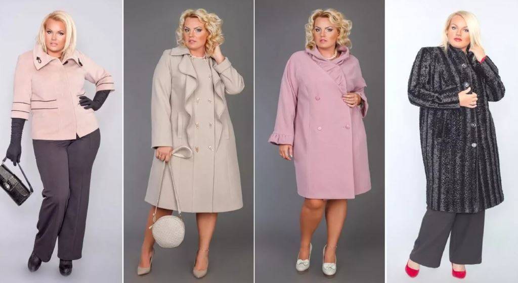 Разнообразие моделей пальто. Не думайте, что на пышном теле плохо смотрится классическое пальто — двубортная комбинация, сделанная из твида или шерстяной вставки, отлично подойдет для любой девушки. Но есть и свои нюансы: поясок лучше подбирать узкий, а не широкий; рекомендуемая длина — немного ниже колена или до него