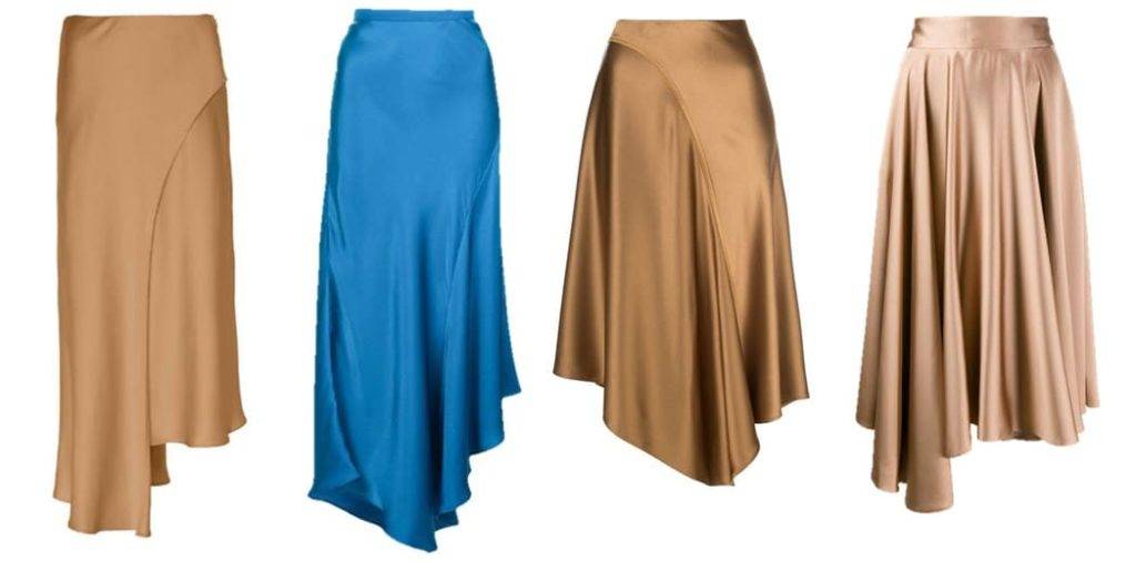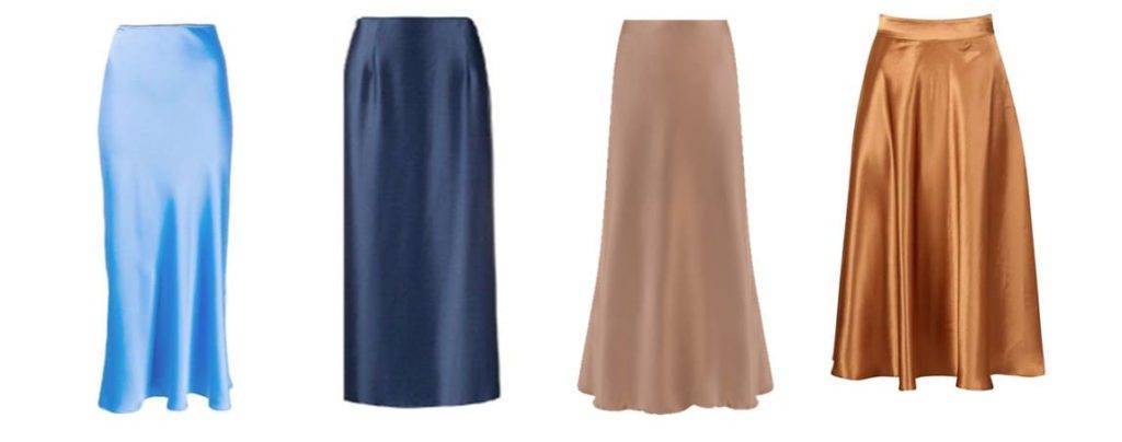 Сатиновые юбки бывают не только из сатина. Самой приятной к телу будет шелковая юбка или юбка из вискозы. Независимо от материала благодаря крою по косой, они садятся на фигуре примерно одинаково