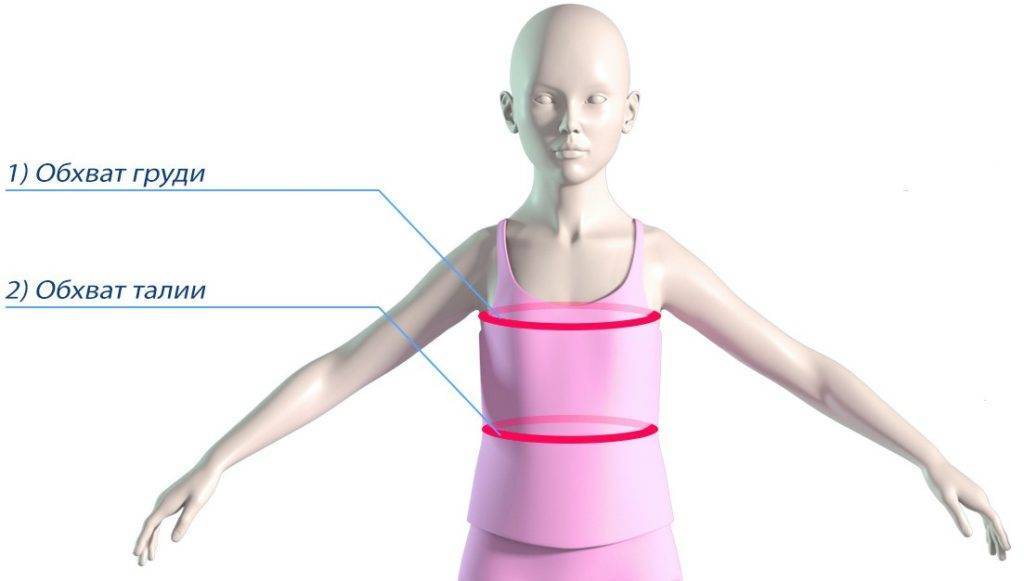 - обхват груди — сантиметровая лента протягивается через подмышечные впадины, лопатки и линию сосков;