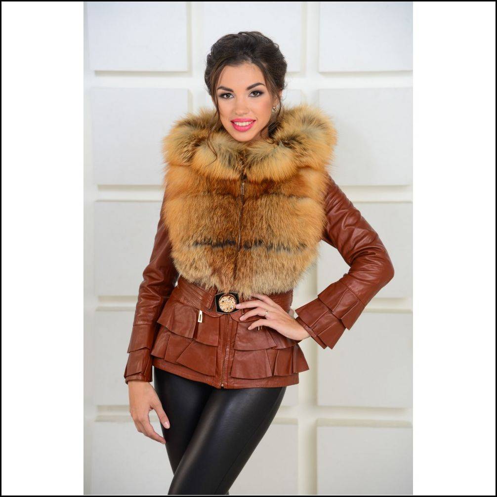 - Кожаная куртка – лучше всего выбирать контрастные цвета, изделие из кожи может быть на несколько тонов светлее или темнее меховой одежды;