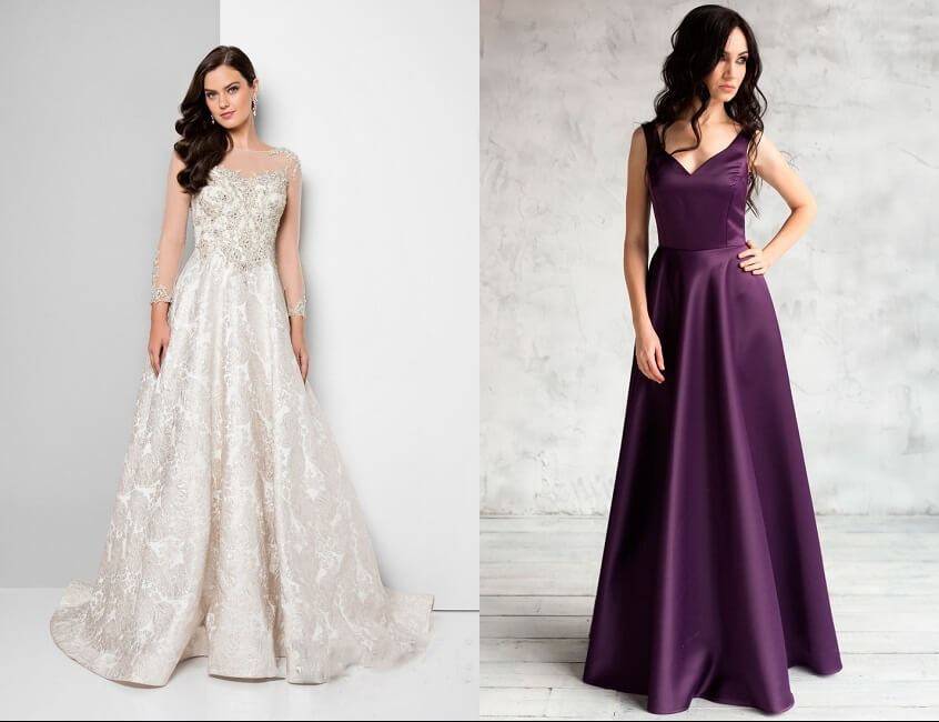 «А-силуэт» – уже исходя из названия, становится понятно, что такая модель напоминают букву «А». Платье имеет достаточно обтягивающий лиф и юбку, которая постепенно расширяется к низу. Низ может быть достаточно пышным, но при этом очень аккуратным и элегантным.