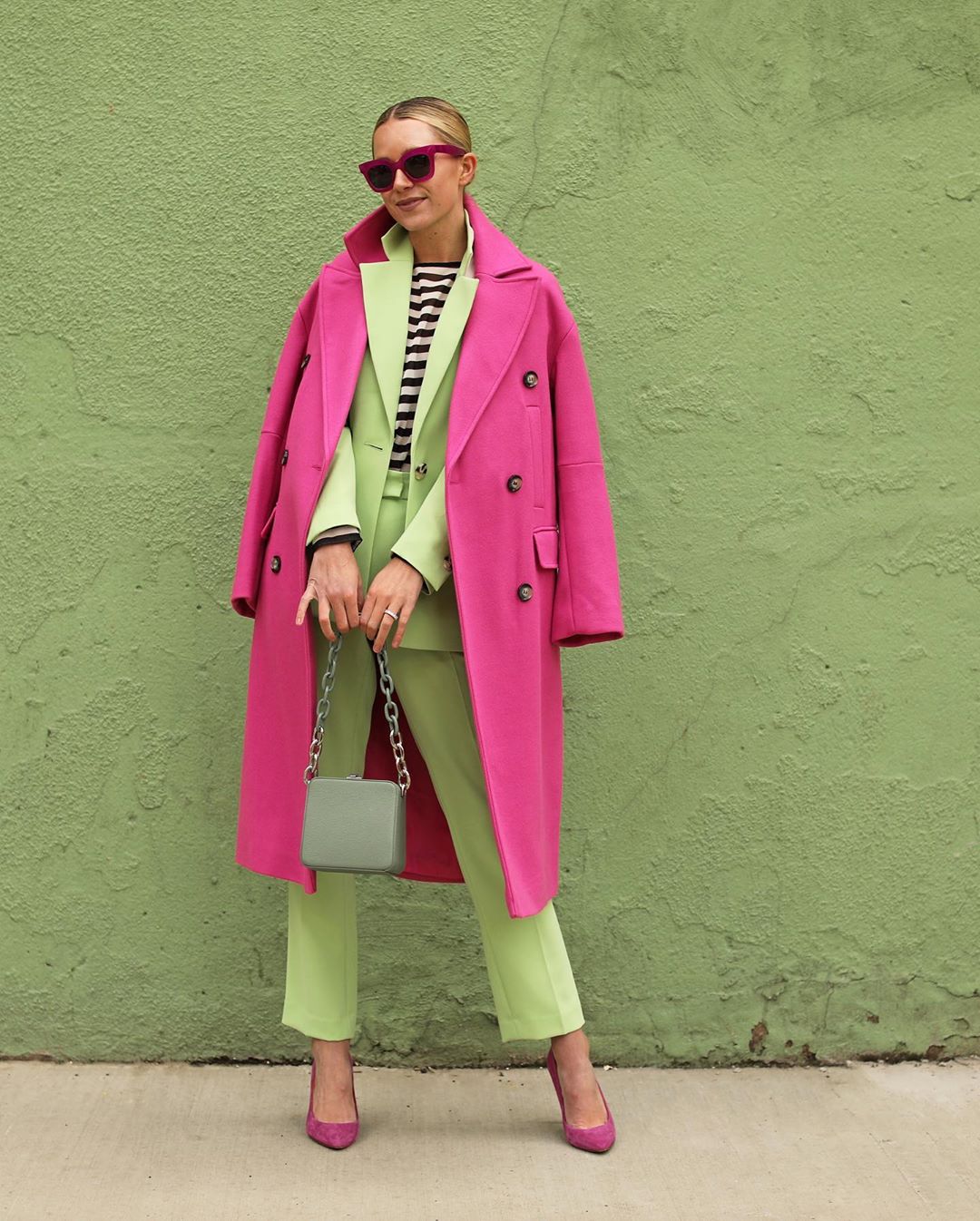 В идеале образ должен быть составлен очень гармонично. Например, если одето яркое пальто, под него стоит выбирать одежду более спокойных базовых цветов.