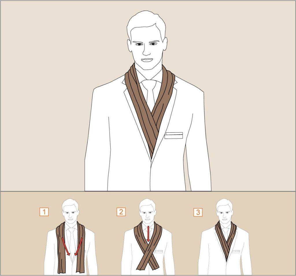 Это короткая справка. Читайте подробнее о том, как завязать шарф мужчине в нашей прошлой публикации с иллюстрациями и схемами.