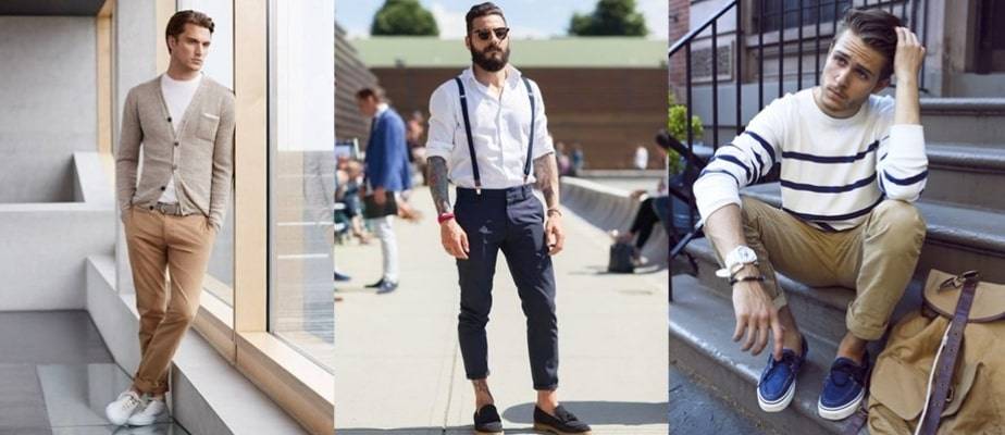 Главное условие гармоничного образа и стиля – это знание и умение, с чем носить мужчинам брюки чинос, как правильно их сочетать с другими предметами гардероба. При создании лука и образа мужчина должен продумать сразу несколько пунктов – сочетание штанов с общим стилем в одежде, правильное сочетание цветов, а также с какой обувью носить чиносы.