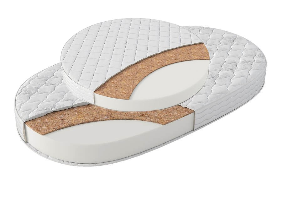 Данный детский матрас состоит из трех слоев: гречневая лузга, пенополиуретан, кокосовый мат