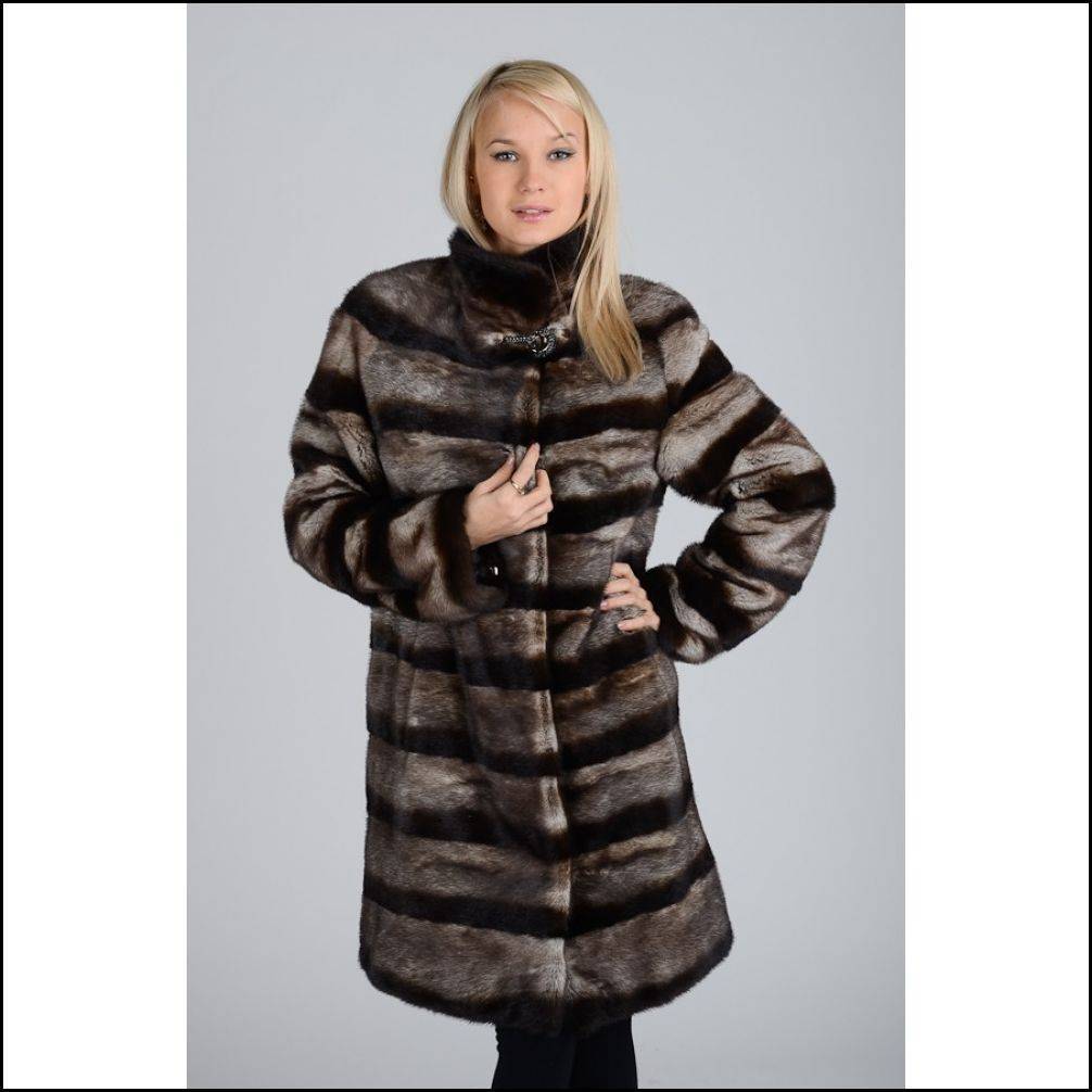 Поперечка представляет собой прямые модели, сшитые из горизонтальных узких полос меха. Теплый мех с длинным ворсом в таких вариациях используется редко. Чаще применяется материал со средним ворсом. Один из самых женственных фасонов, плавно повторяющий силуэт. Наилучшими шубами в технике поперечка являются шиншилла, норка, каракуль.