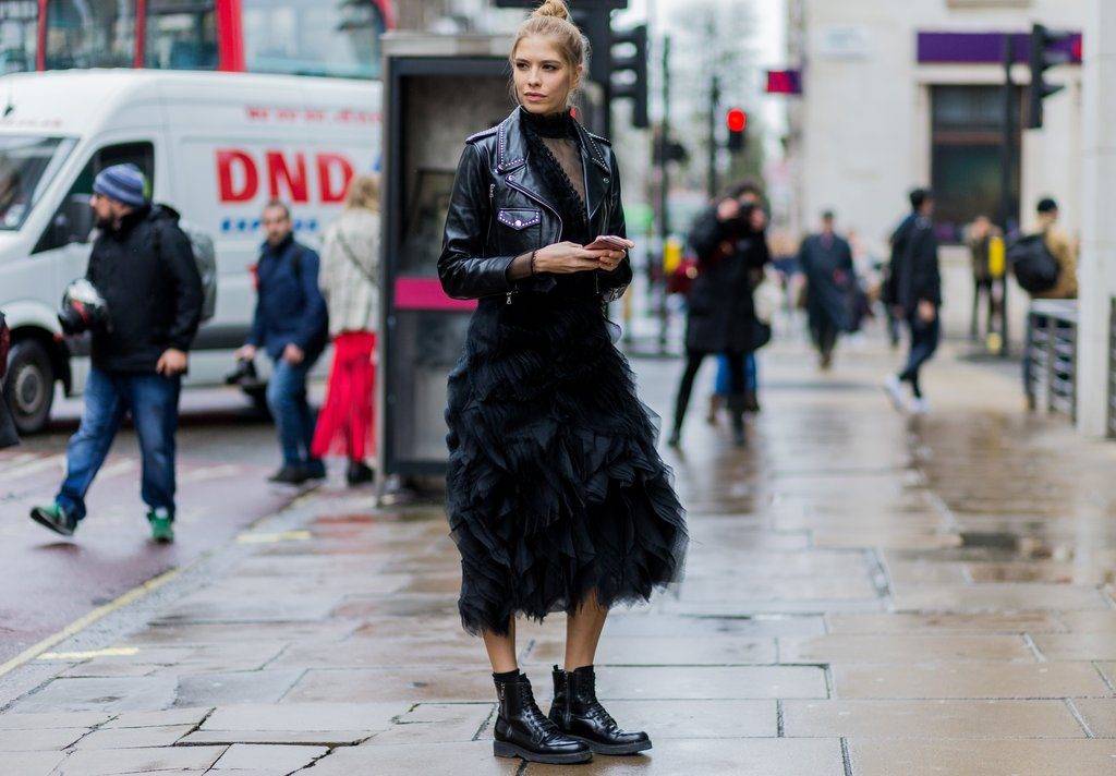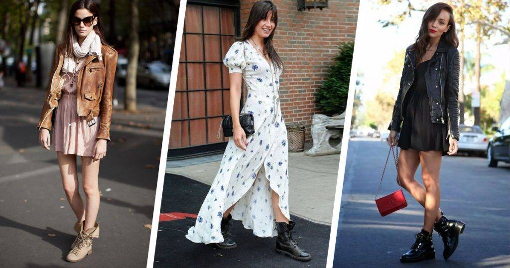 Однако в новом сезоне особенной популярностью пользуются сочетания с узкими джинсами классическими юбками и платьями до колена. В повседневной жизни лучше носить ботинки без каблука, дополняя их простыми по крою предметами гардероба – джинсы и водолазки, худи. Также ансамбли будут хорошо смотреться с разного рода куртками, включая косухи.