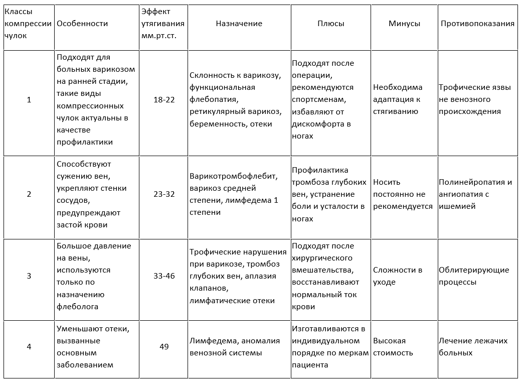 | 0 класс | 5–18 мм рт. ст. | Нулевой класс объединяет профилактические чулки. |