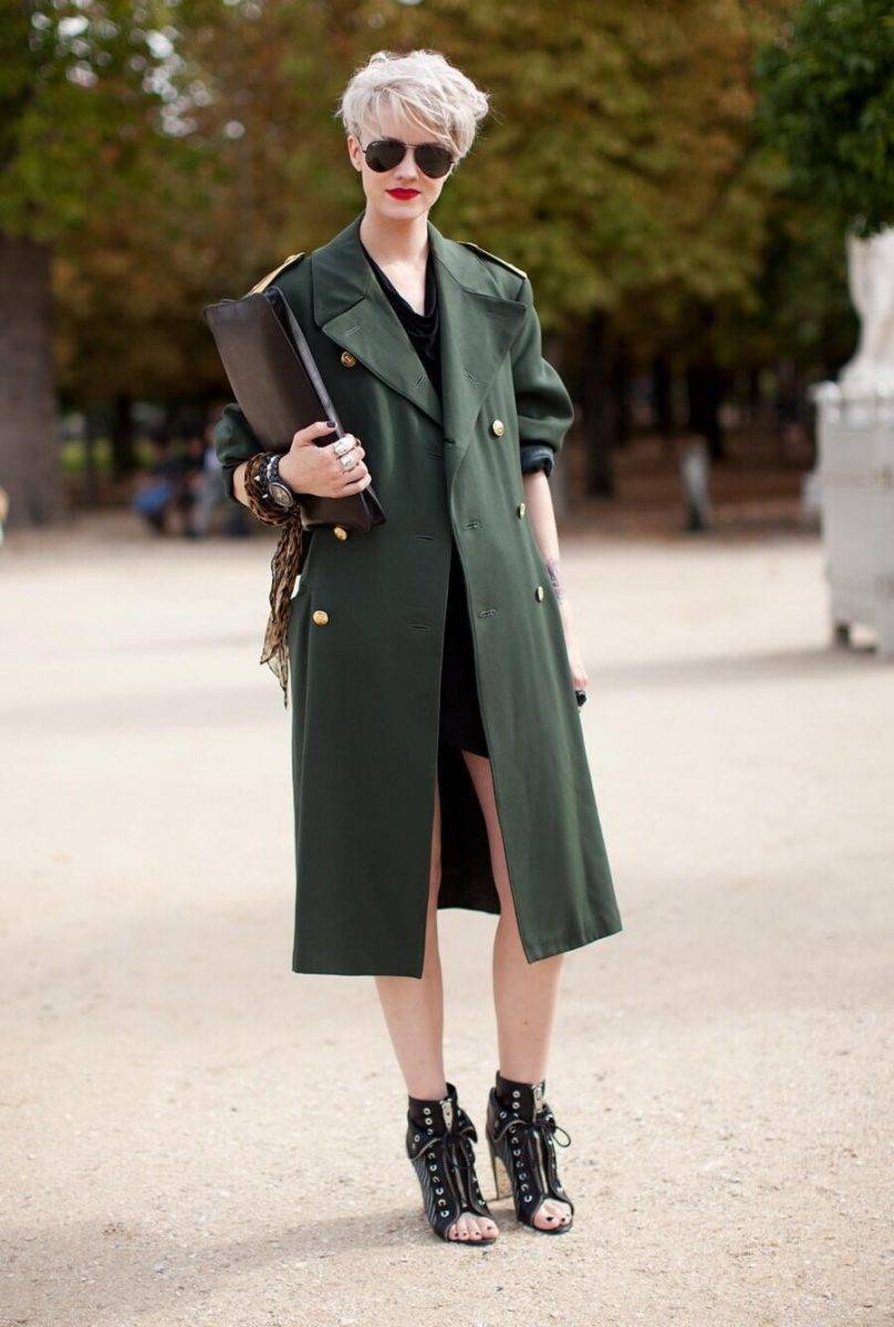 На осень ведущие стилисты и дизайнеры рекомендуют подобрать верхнюю одежду в стиле милитари. Модное пальто не обойдется без большого количества металлической фурнитуры, воротника стойки или отложной модели. Особый шарм внесут объемные карманы.
